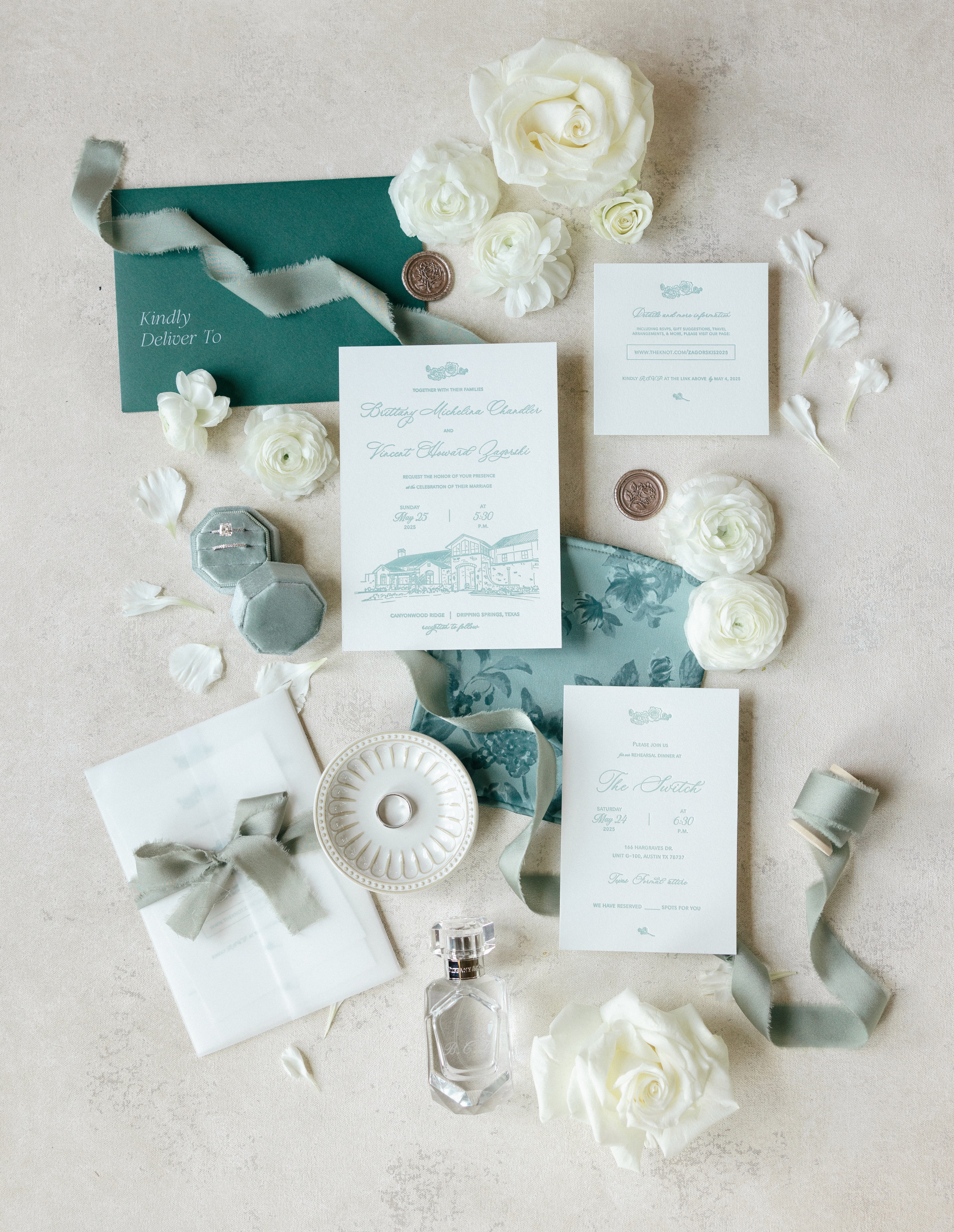 Additional cards: Save the dates, Wedding party request, RSPV inserts, Rehearsal dinner cards, thank you cards, and more!